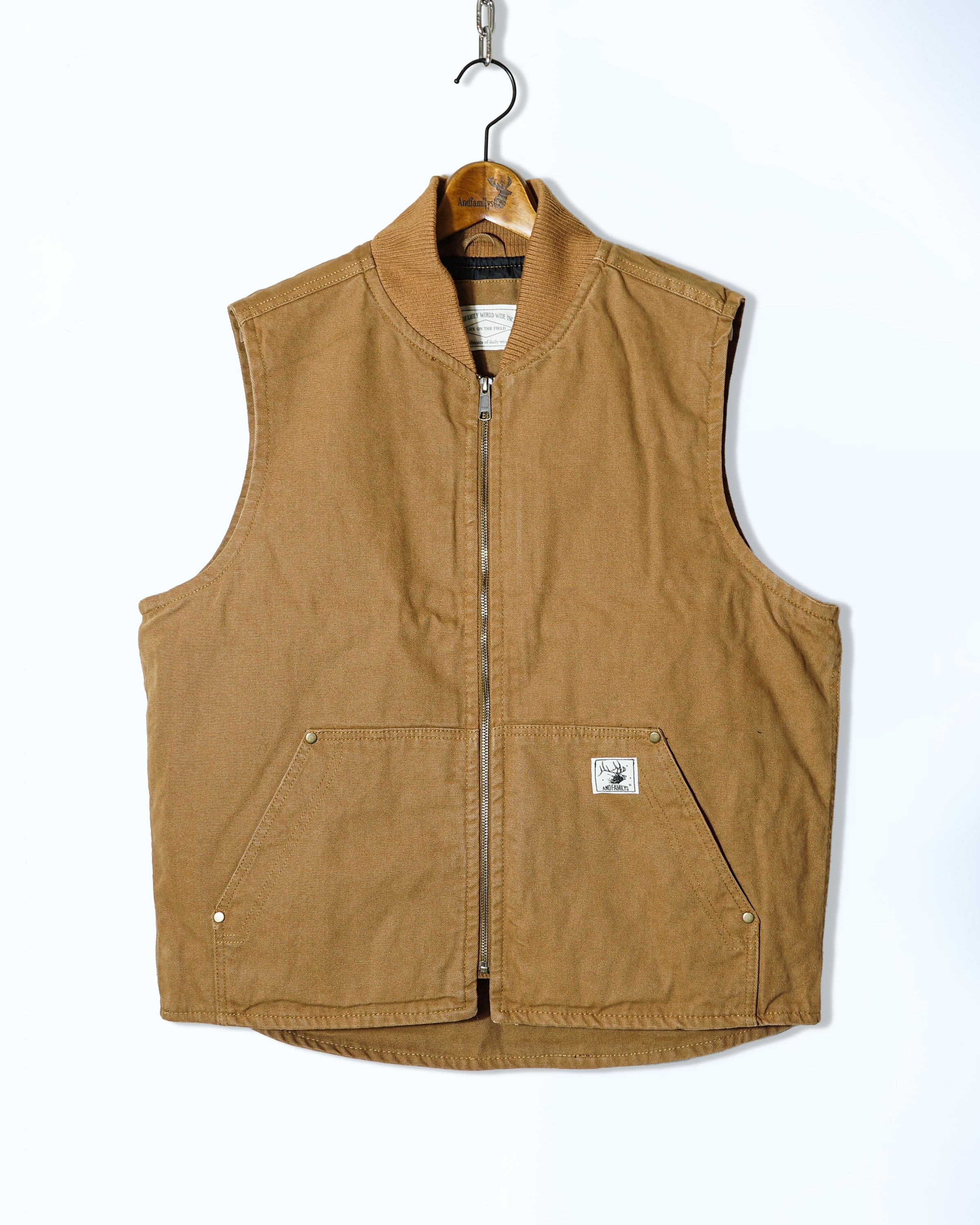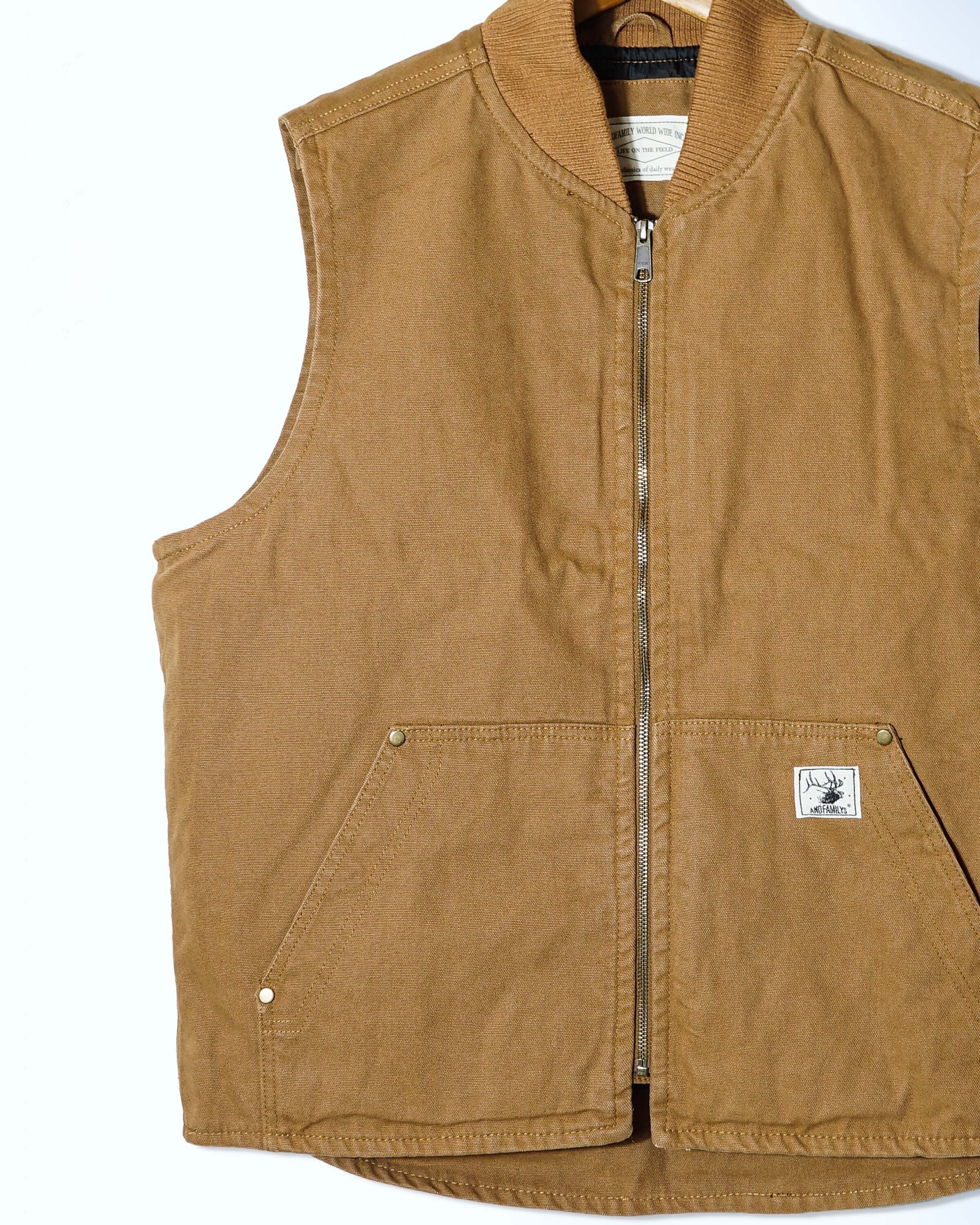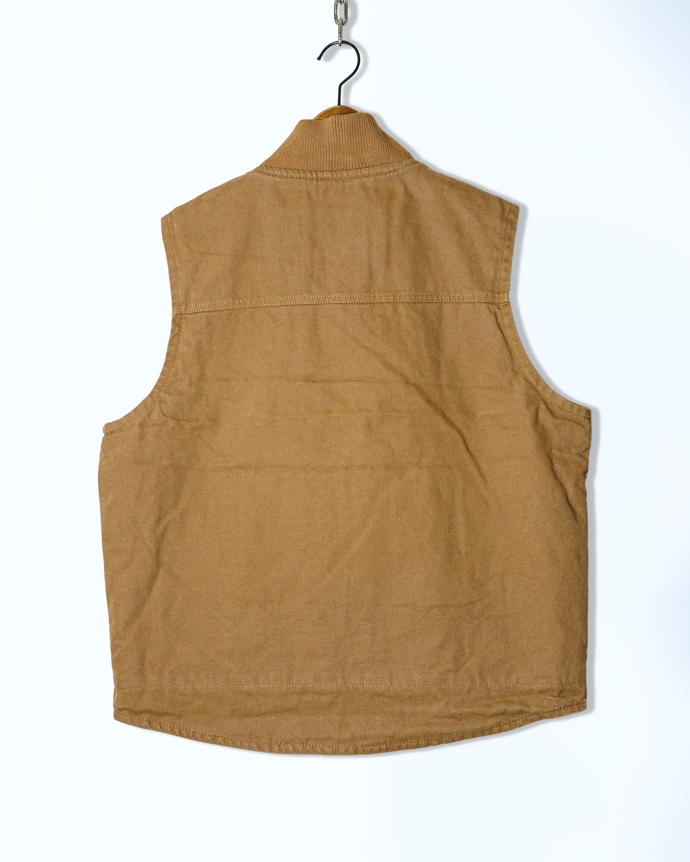 12オンスのダック素材を使用し程良くゆったりとしたボックスシルエットでシンプルなダックベスト。ストーンウォシュ加工を施しているので始めから着心地が良く着用して頂けます。